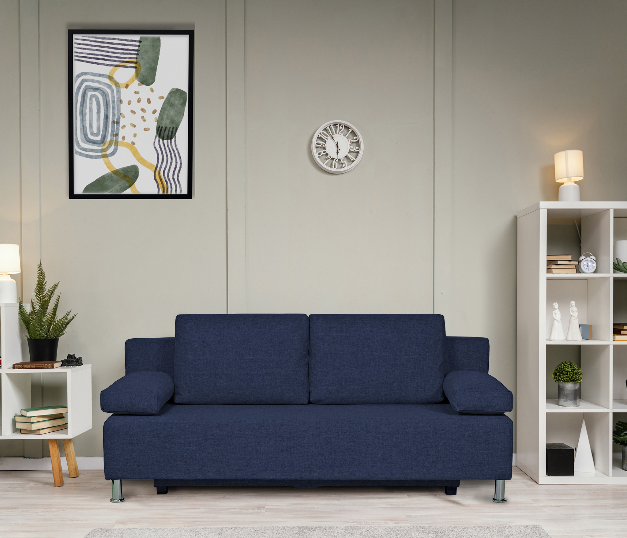 - Механизм раскладки трёхсекционная еврокнижка. В отличие от еврокнижки, спальное место у такого дивана образуется поперёк, а не вдоль сидячего места и состоит из трёх частей. Благодаря такой конструкции габариты дивана в ширину могут быть значительно меньше, чем у еврокнижки, что актуально при планировании расстановки мебели в зависимости от размеров помещения. Под сиденьем дивана находится короб для хранения вещей и постельных принадлежностей.