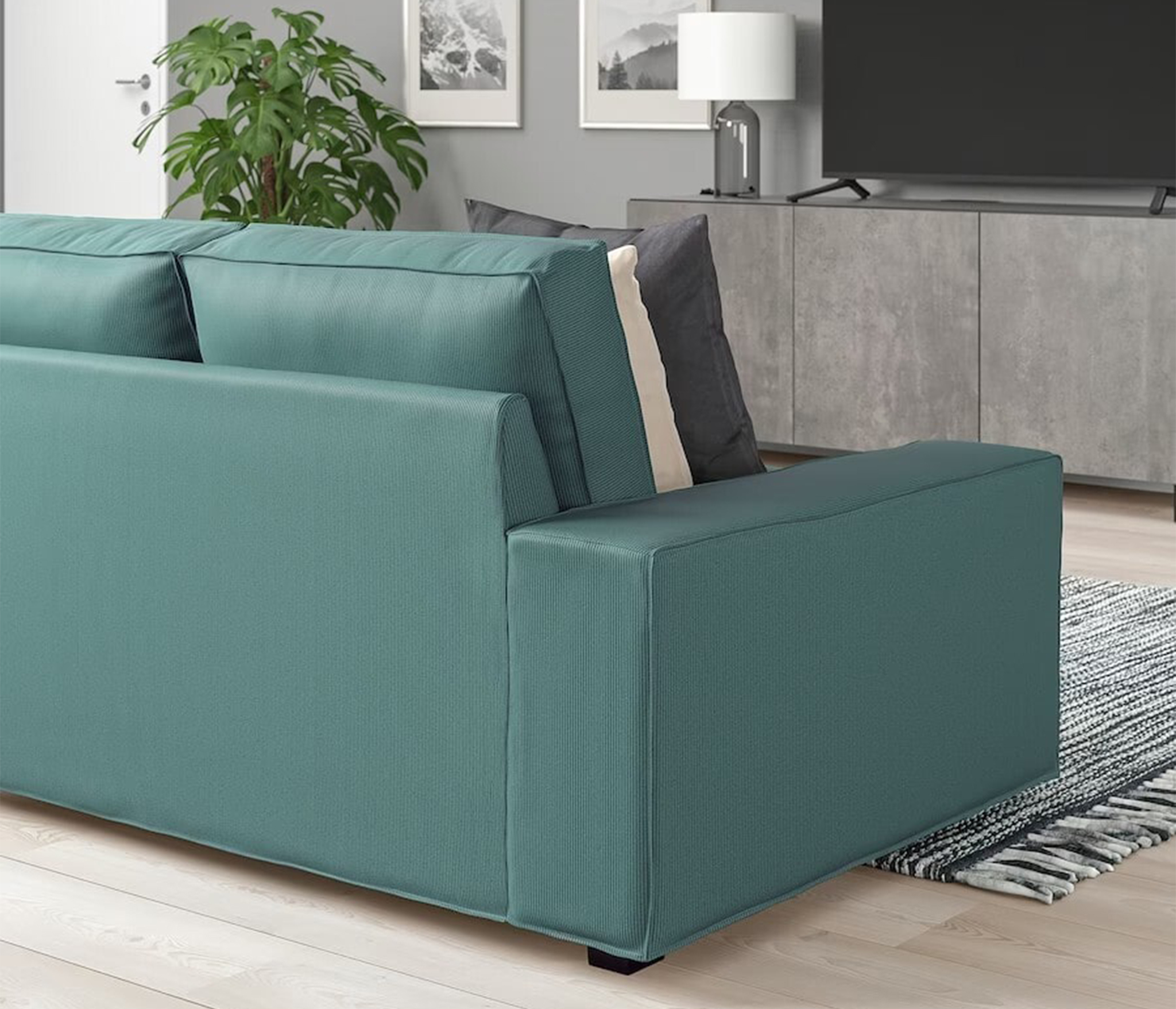 Диван прямой с обивкой рогожка цвета Бирюзовый,с наполнителем ППУ,без раскладного механизма и без ящ.для белья,Материал: ДВП, фанера