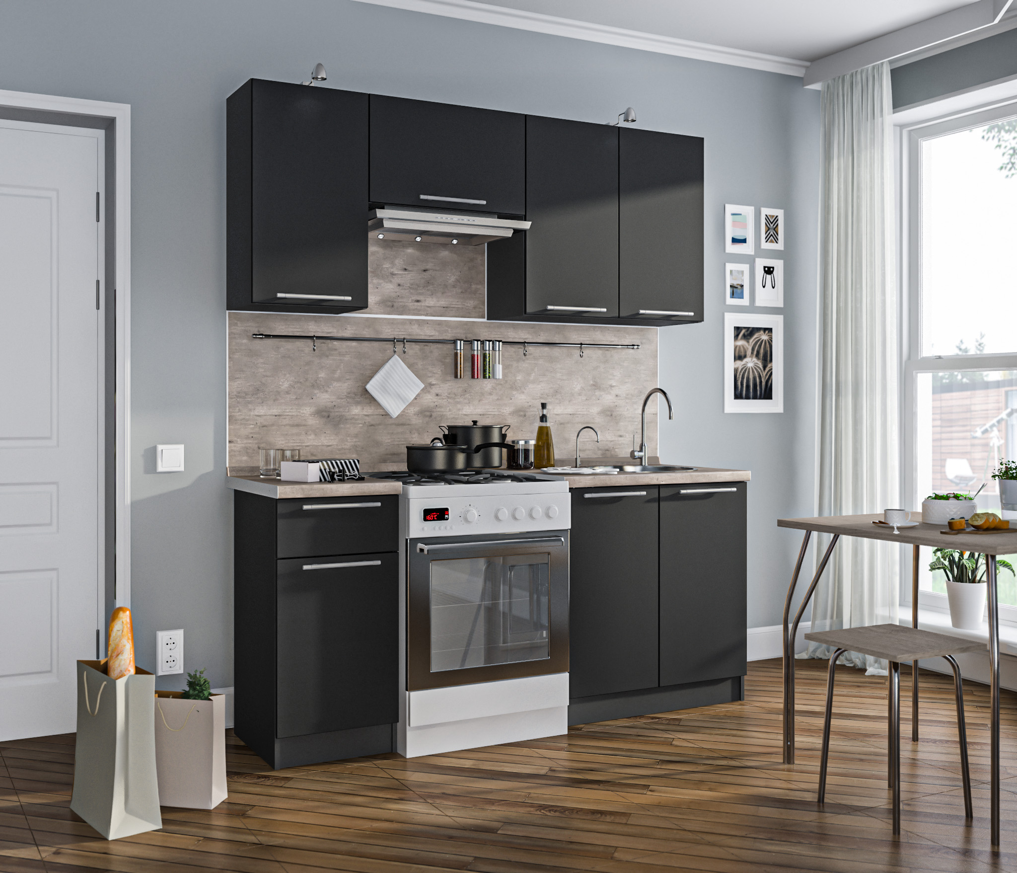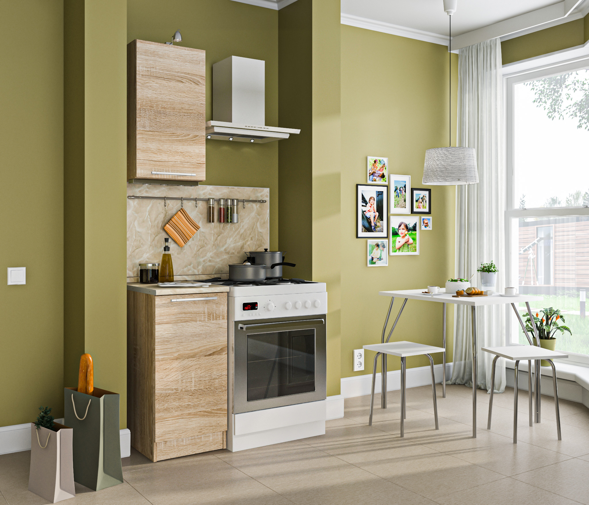 Столешница, стеновая панель, мойка, сушка и бытовая техника приобретаются отдельно.