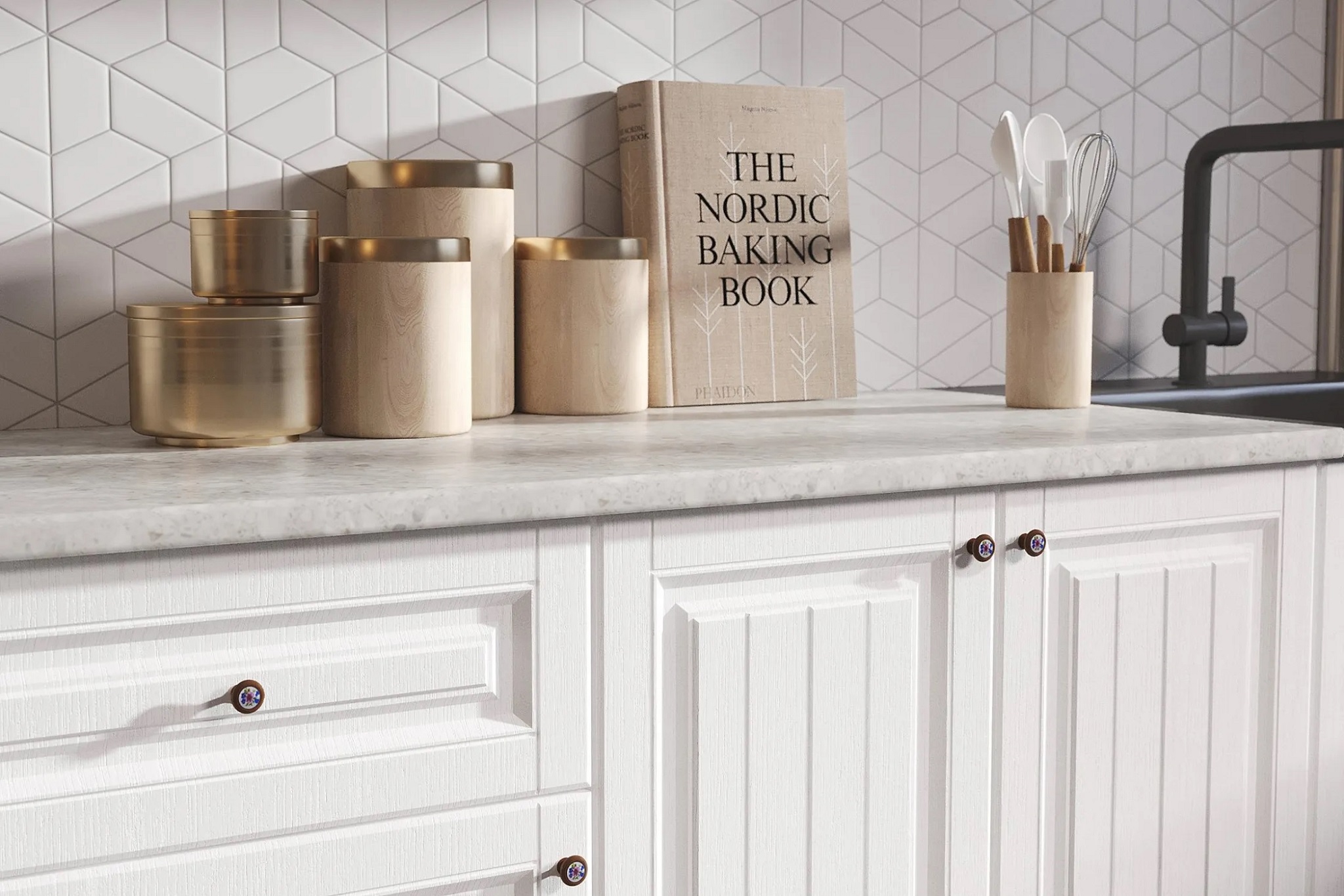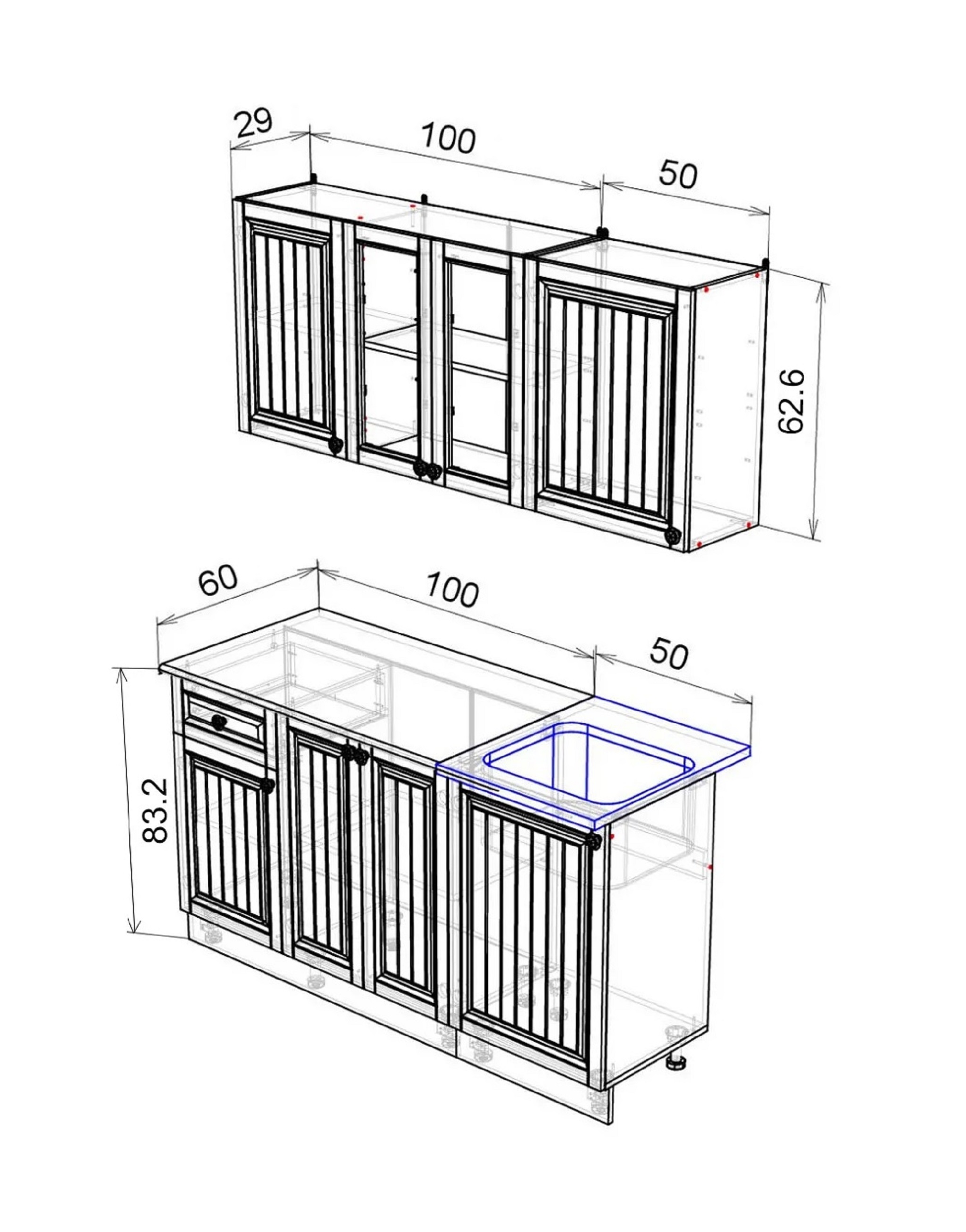Несмотря на простоту дизайна модель объединила в себе самое необходимое для комфортного использования. Шкафы и столы оснащены необходимым количеством полок и отделений, где Вы сможете хранить бытовые принадлежности.