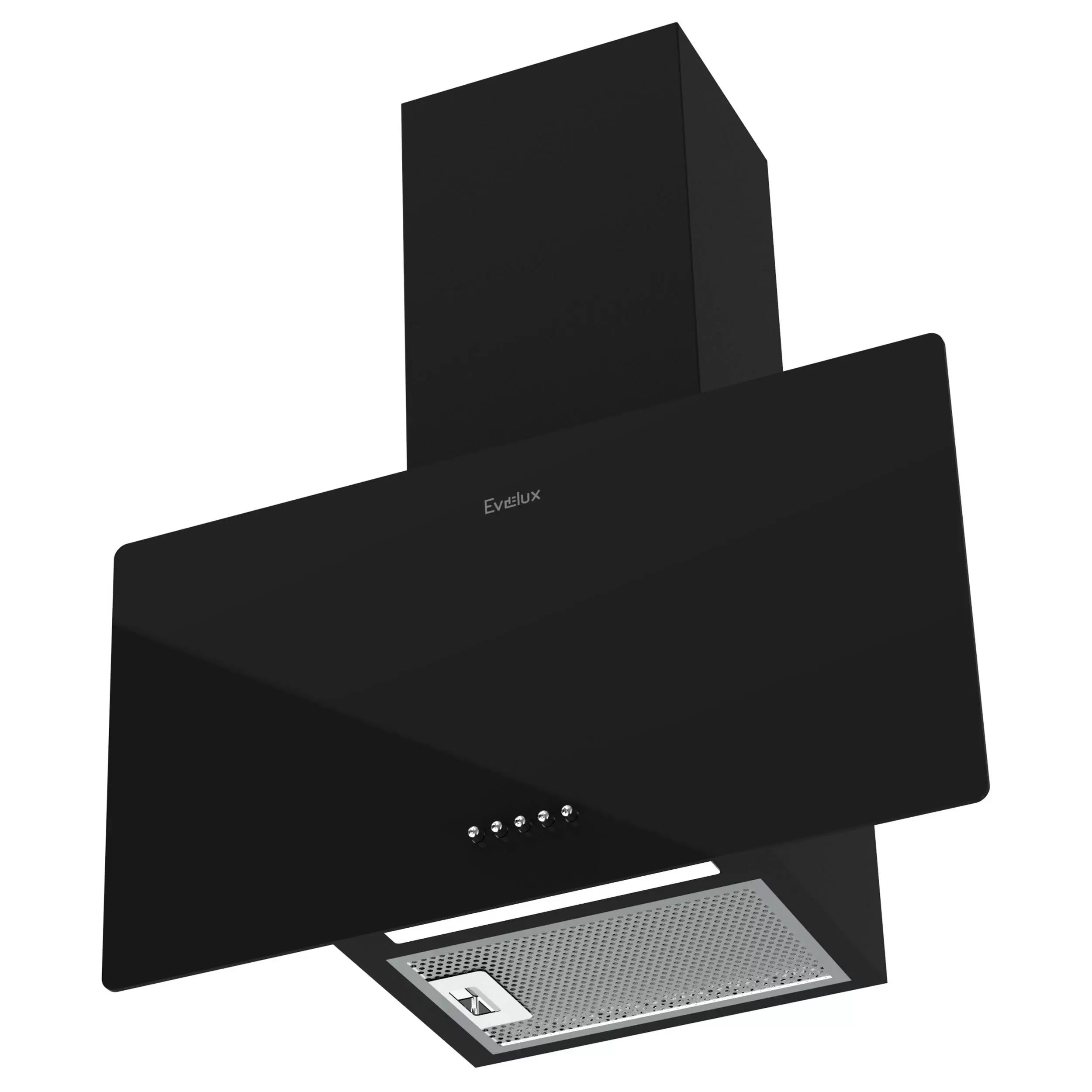 Навесная вытяжка, 60 см, механический контроль, 3 скорости работы, производительность 890 м³/ч, LED освещение, черный, металл, стекло, 600х335х335-602 мм.
