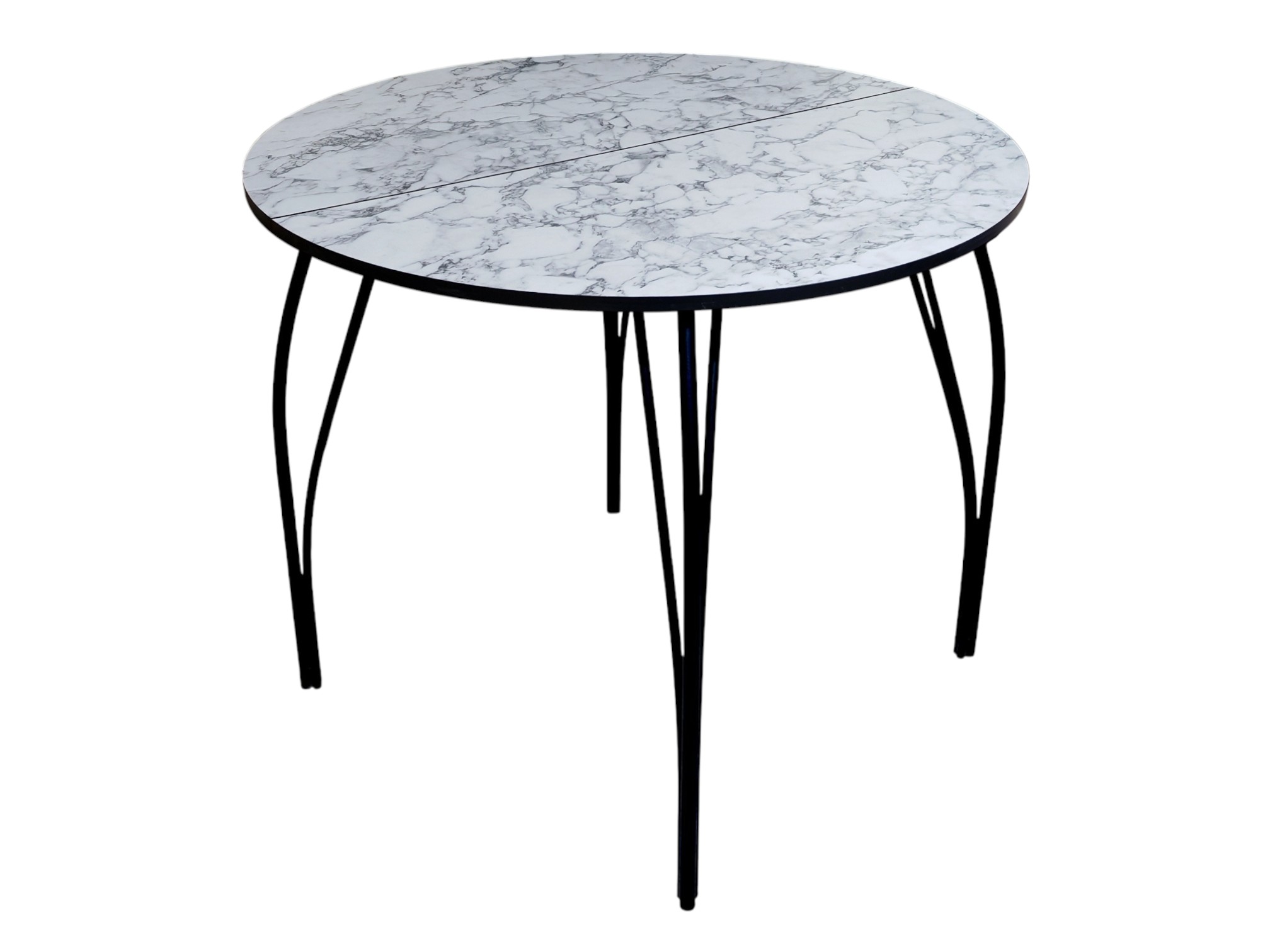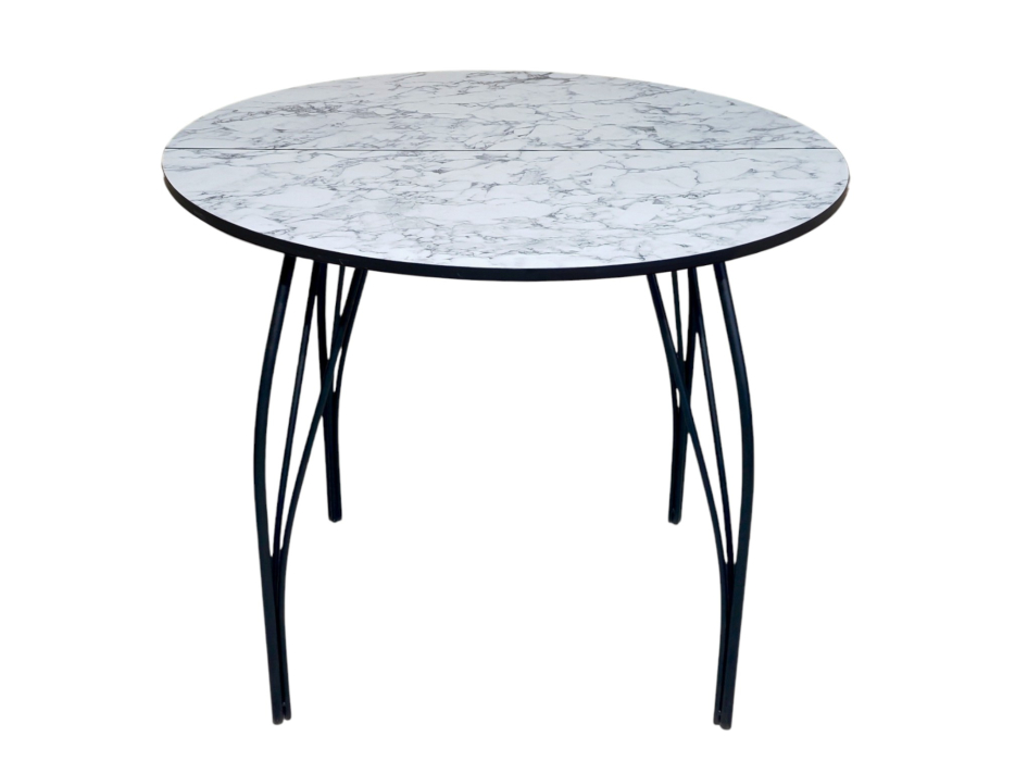 Обеденный стол Барин, D 90-120х75 см., вставка 30 см., материал столешницы: ЛДСП, 18 мм., форма столешницы: круглая, исполнение: двухсторонне, конструкция: раздвижной/безцарговый, механизм раздвижения: синхронный со стопором, торцы столешницы: кромка ПВХ, элегантная металлическая опора, трехлучевая (1/18 мм., и 2/12 мм.), с ПВХ заглушками, порошковая покраска. Форма поставки: в разобранном виде. Вид упаковки: картонная коробка.