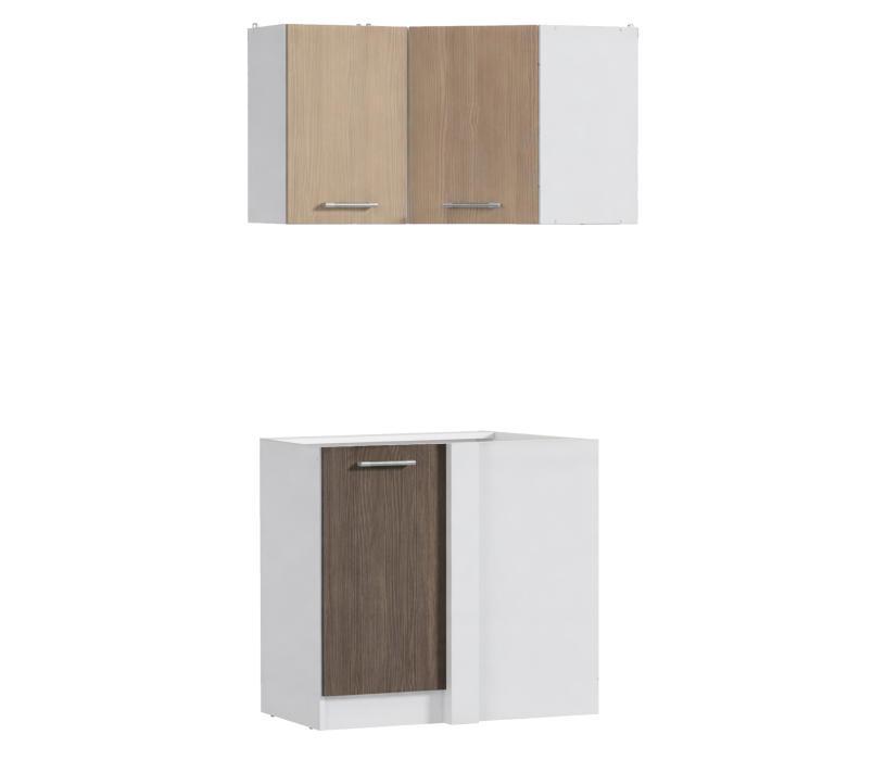 Виктория угловая Кухня Белый/Сосна Авола Шампань/Сосна Авола Коричневая (без столешницы) Код 00000251239