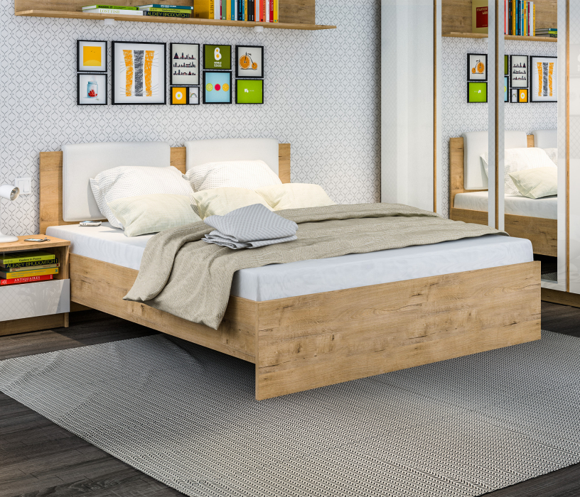 Кровать из модульной серии «Веста» на 1600 – природные оттенки материла придают теплоту и уют в спальной комнате. Вы можете дополнить кровать тумбой. Комодом и шкафом из серии «Веста».