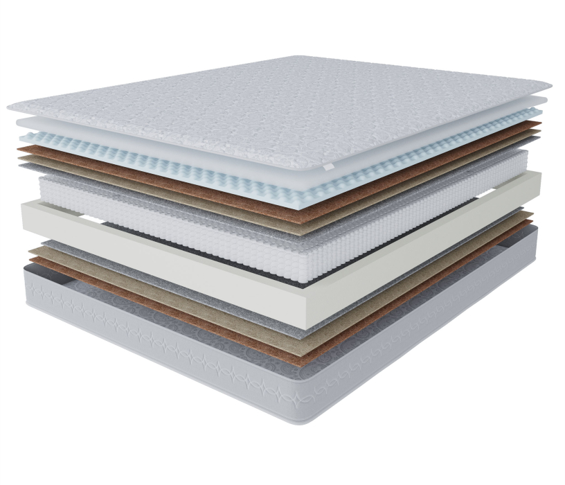 Многослойный матрас, подходящий для пар с разным весом. Многообразие слоев и разность их жесткости обеспечит комфортный сон почти любому. Вязкоэластиный ППУ создает ощущения близкие к материалам с памятью формы, но при этом не увеличивает стоимости самого матраса. Пена с эффектом микромассажа обеспечит полное расслабление после тяжелого дня. В этом матрасе использованы латексированные плиты кокосного волокна и сизаля, имеющие в совокупности толщину 20 мм и 30 мм (разные стороны) обеспечат правильную поддержку позвоночнику и при этом защитят матрас от продавливания. Этот матрас- гарантия хорошего и здорового сна, что в свою очередь пойдет на пользу суставам и опорноднодвигательному аппарату, а в случае уже имеющихся проблем, он поможет замедлить их развитие. Обращаем ваше внимание на то, что любой матрас отвечает за правильность положения во время сна нижнего и среднего отделов позвоночника, а за правильность положения шейного отдела отвечает правильно подобранная ортопедическая подушка. Рекомендуем использование с защитным чехлом AquaStop.