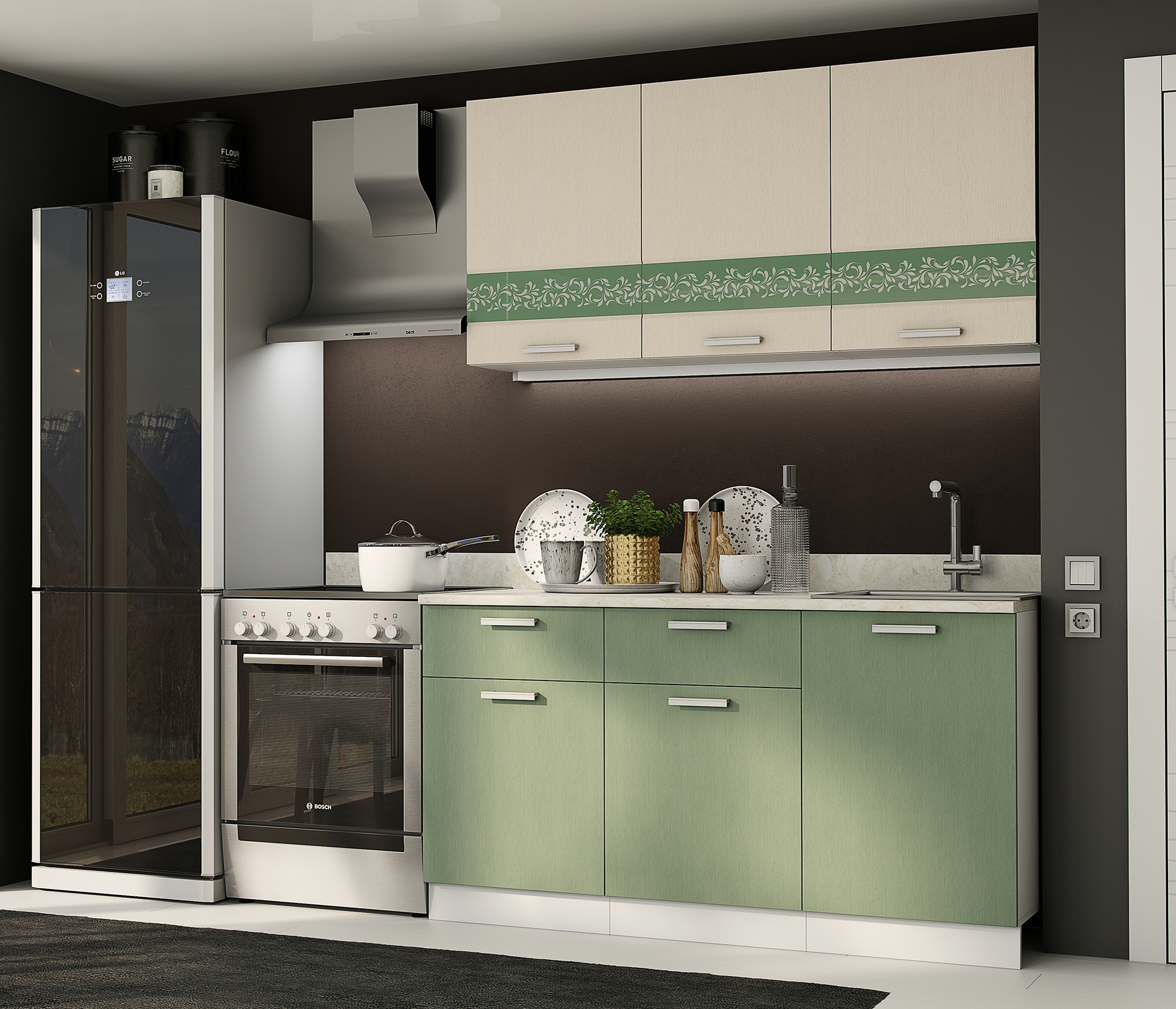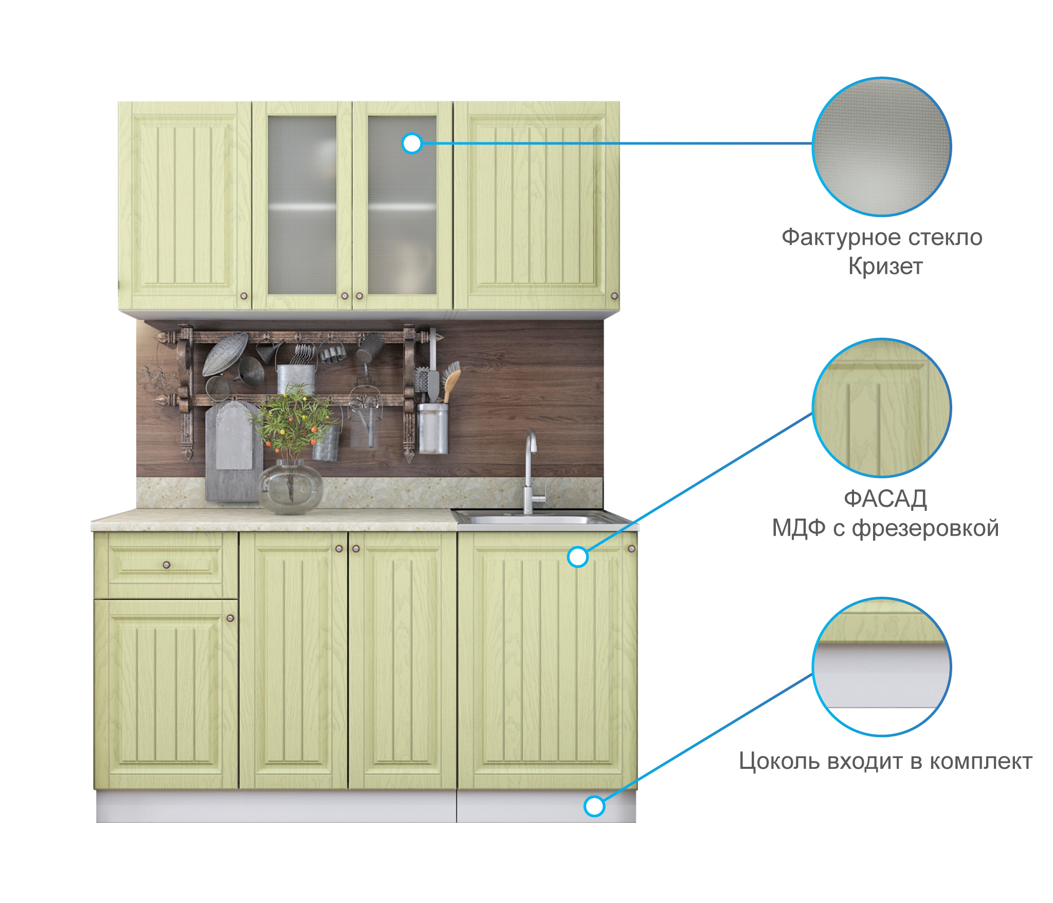 Кухня Хозяюшка 1,5 м Фисташка МДФ Код R0000244914