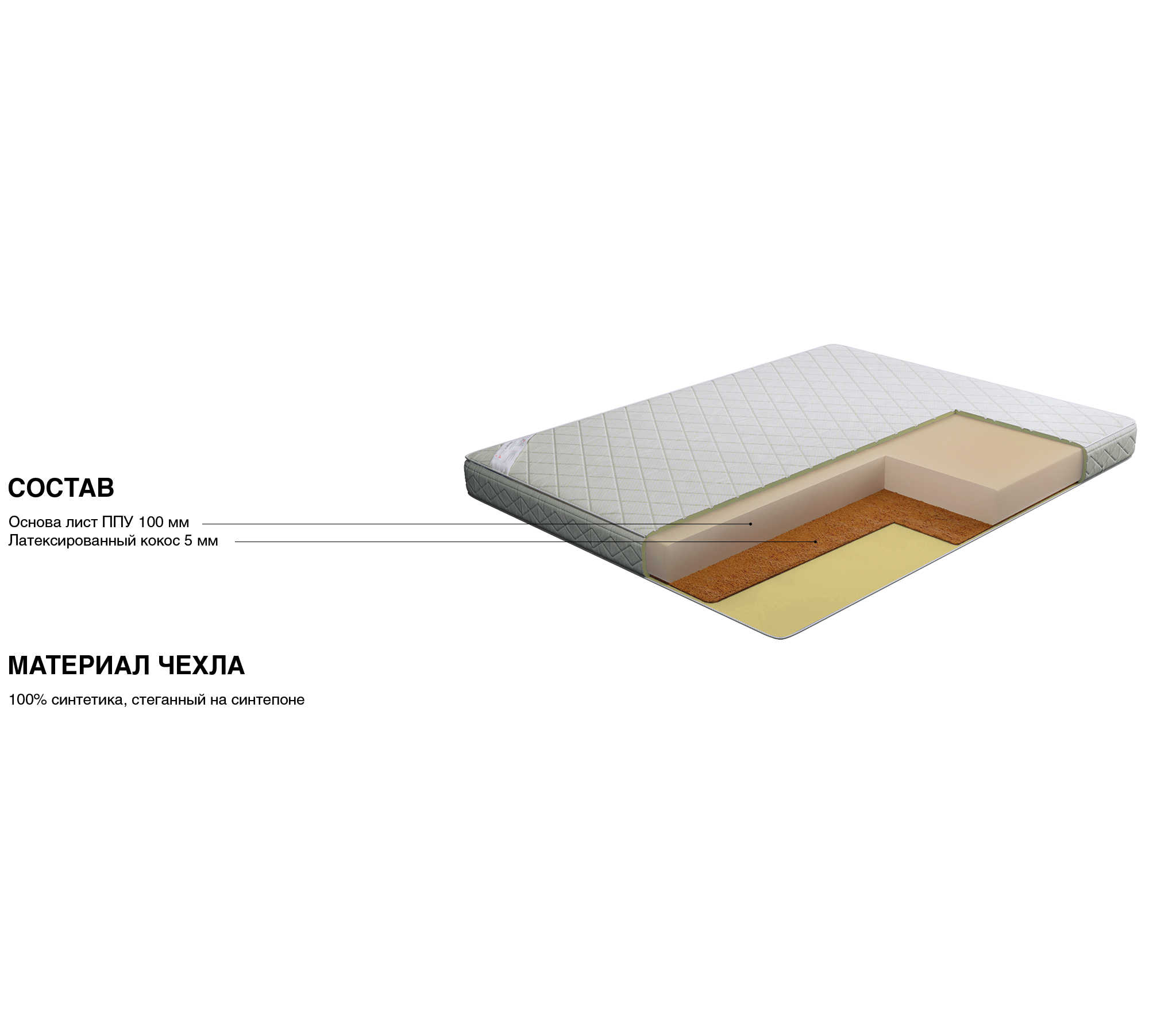 Матрас: Пенополиуретан Н100мм, плита кокосовая латексированная Н5мм