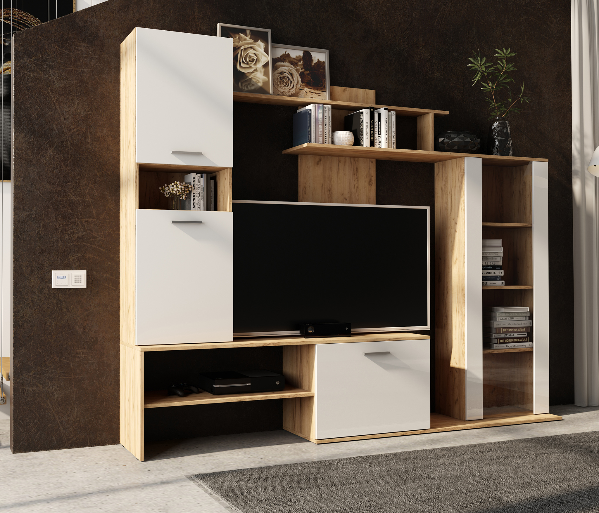Цвет: Дуб Вотан/Белый глянец