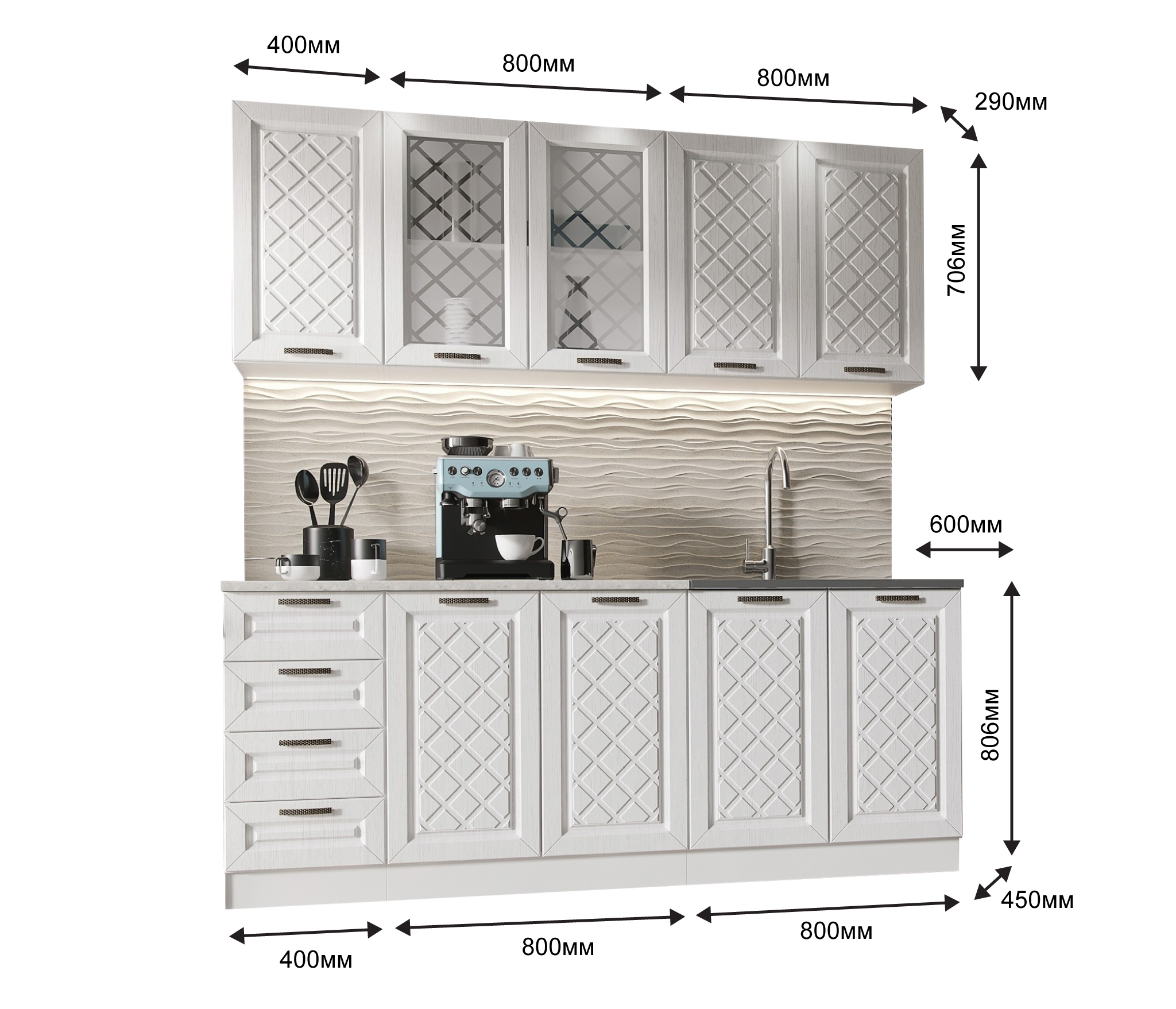 Материал исполнения: корпус-ЛДСП / Фасады-МДФ