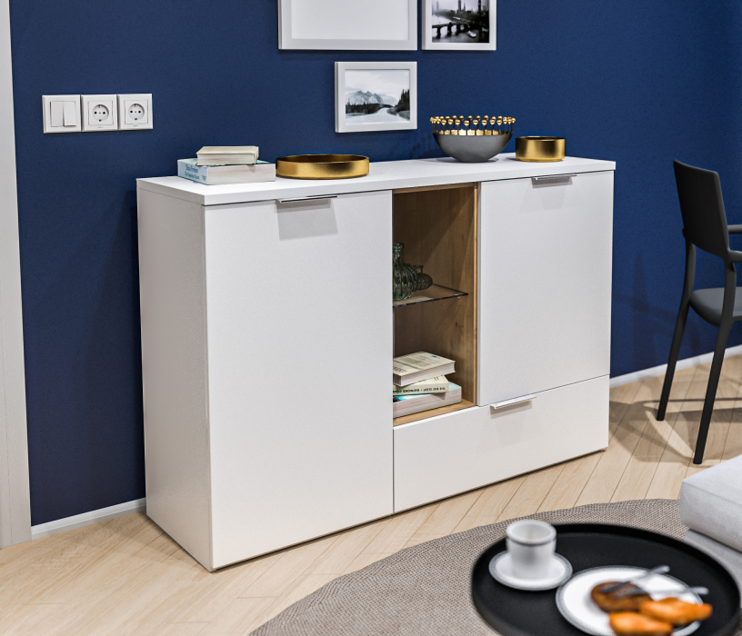 Комод Мальта СБ-3264 Белый,Дуб Гамильтон/МДФ Белый (Белый,Дуб Гамильтон/Белый)