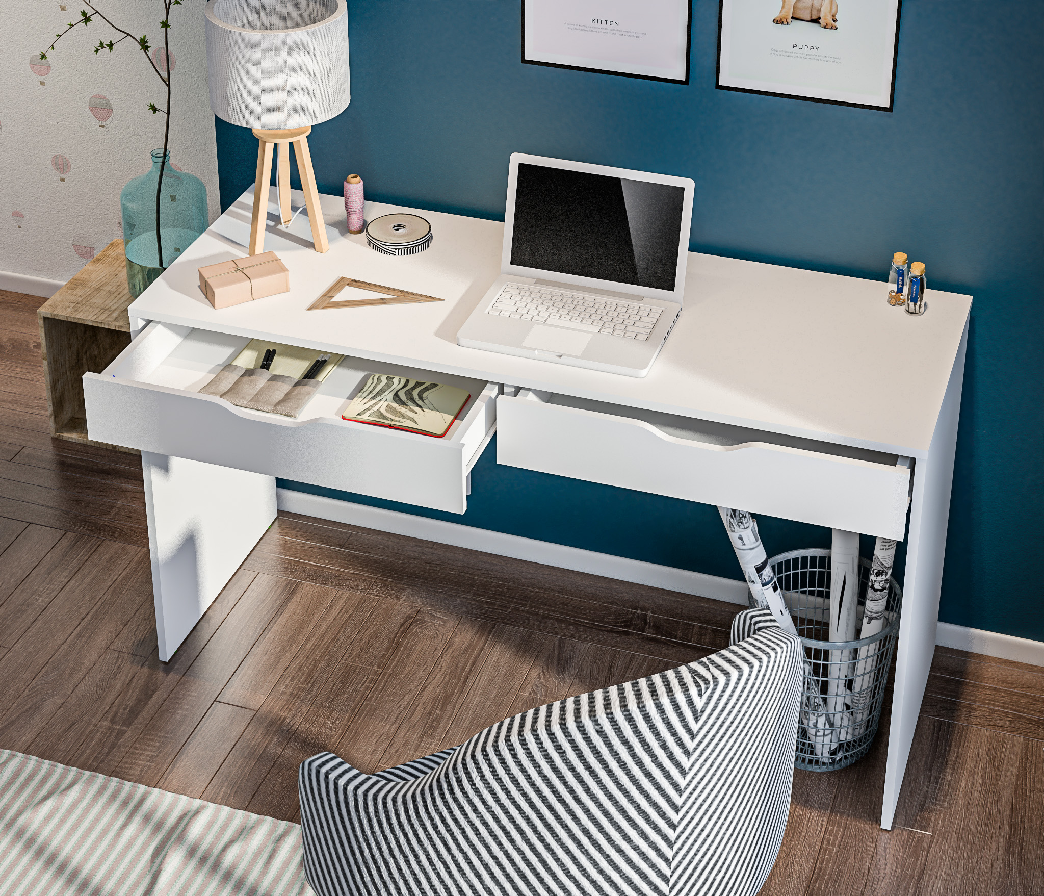 Минималистичный декор, отсутствие ручек и нейтральный цвет стола позволят разместить его в любой интерьер. Также вы можете дополнить письменный стол Бруклин комодами одноименной коллекции.