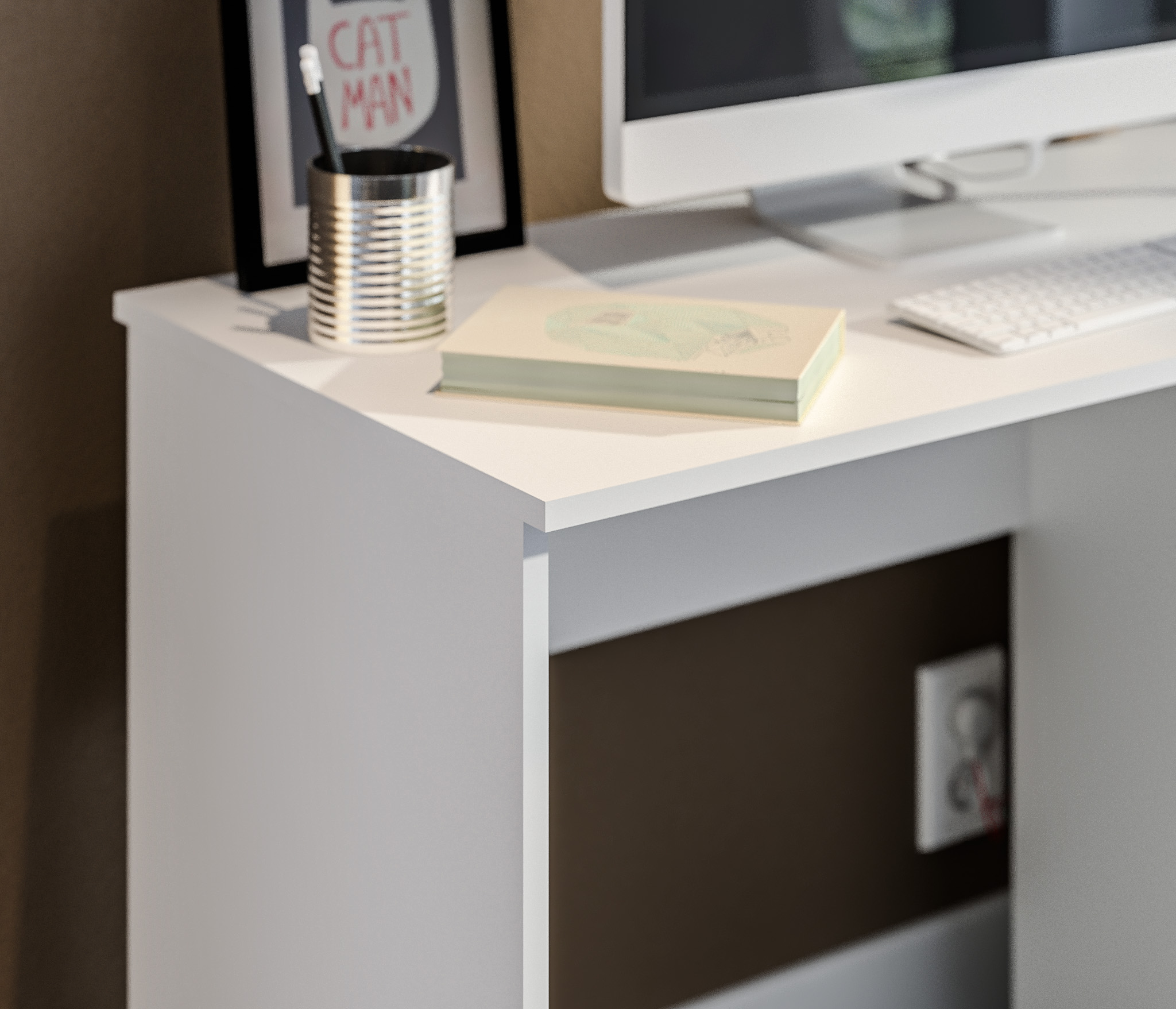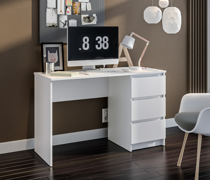 Стол Леон СБ-3336 – продуманное и комфортное рабочее место. Он может занять достойное место в кабинете, комнате школьника или студента, а также в офисе. Габариты стола Леон – ширина 119, высота 75 и глубина 50 см. Под рабочей поверхностью расположена тумба с ящиками для хранения разных мелочей.БикЮМинималистичный декор, отсутствие ручек и нейтральный цвет стола позволят разместить его в любой интерьер. Также вы можете дополнить письменный стол Леон комодами одноименной коллекции. Выполнен комод из высококачественного КДСП.
