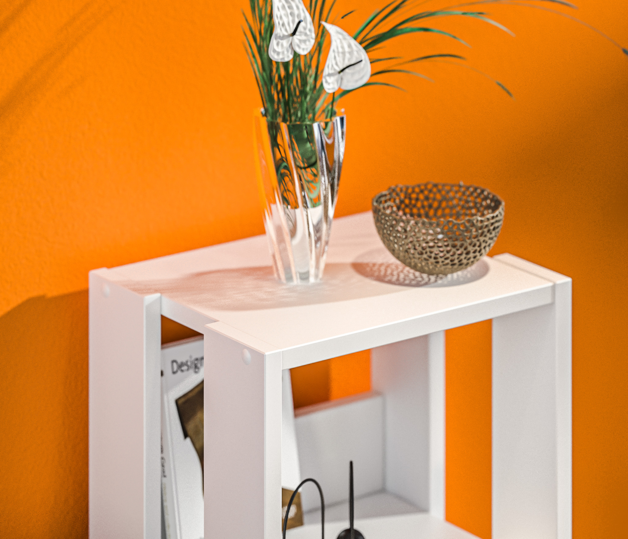 Выполнен стеллаж из современного и прочного ЛДСП (в белом цвете- КДСП).