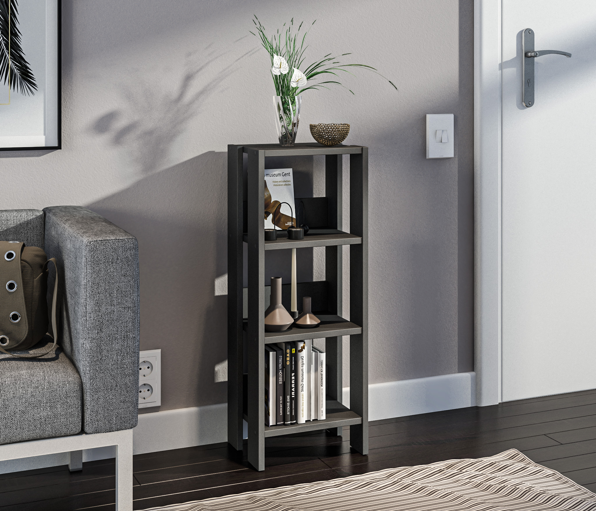 Стеллаж Альфа СБ-3330 - простое и стильное решение вопроса, связанного с хранением различных вещей. Это функциональный предмет мебели для оформления кабинета, гостиной, детской, спальни и даже прихожей в современном стиле.
