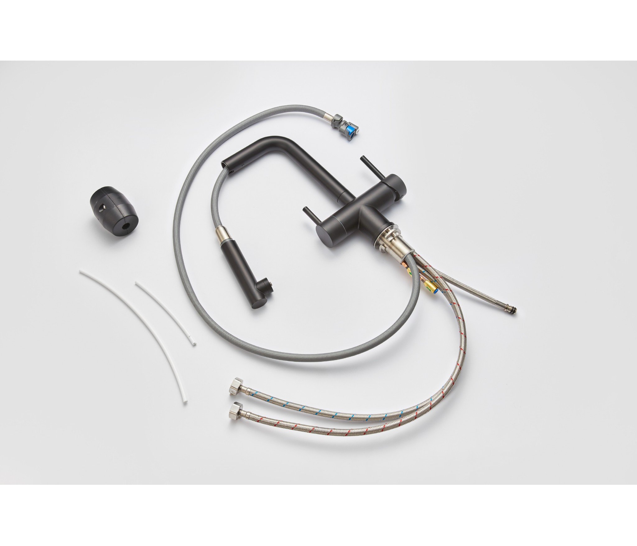 Подача питьевой воды совмещена с проточной в один аэратор, но не пересекается. Для каждого типа воды свой канал подачи.
