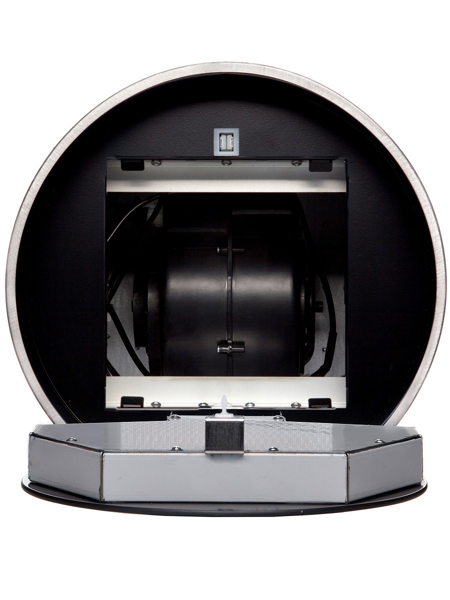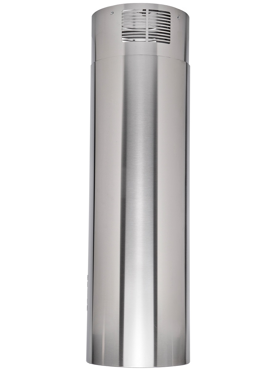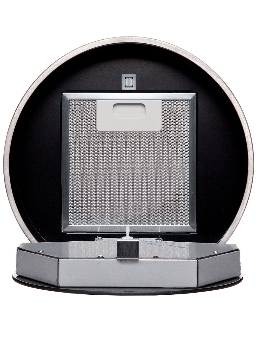 + Вытяжка выполнена в форме цилиндра. Геометрические формы повсеместно используется в современных дизайнерских проектах, они ассоциируются с простотой и лаконичностью, привносят в помещение гармонию и стиль. Стильное сочетание стали и блеска закаленного стекла создают ощущение легкости прочной конструкции. Декоративный стеклянный люк скрывает алюминиевый, жироулавливающий фильтр, придавая завершенность композиции