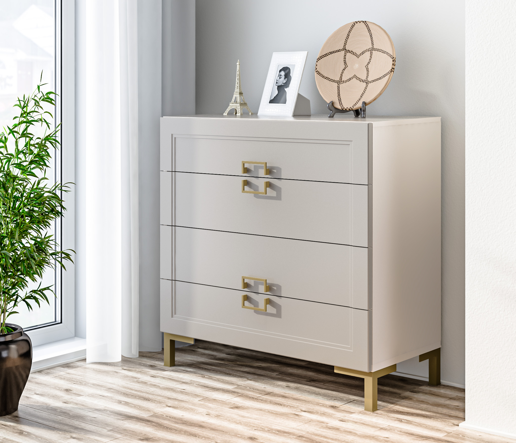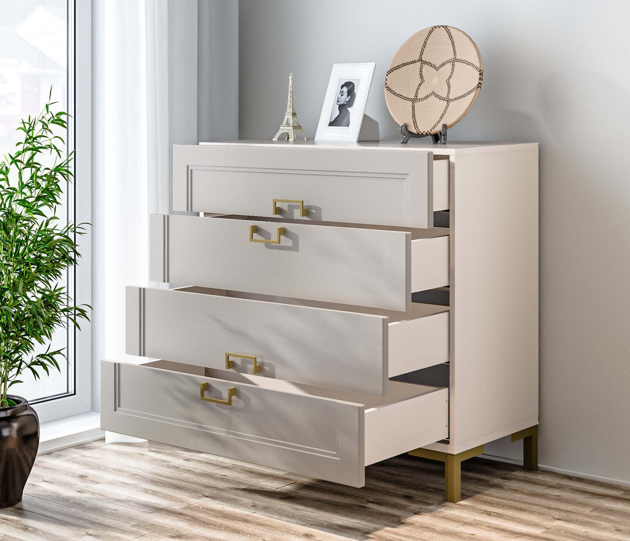 Вместительный комод имеет 4 ящика.