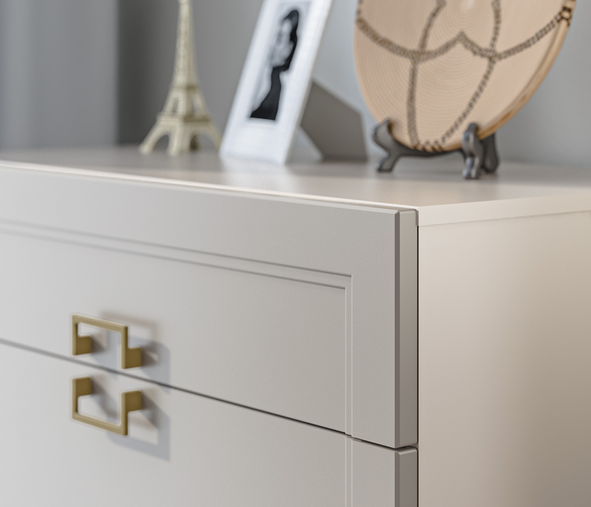 Золотистые ручки и ножки коллекции "Ассоль" добавляют неповторимый шик и изысканность, завершая образ тонким и стильным блеском. Эти акценты создают атмосферу роскоши и утонченности. Они играют роль визуального украшения, дополняя общий вид мебели и придавая ей особый шарм и элегантность.