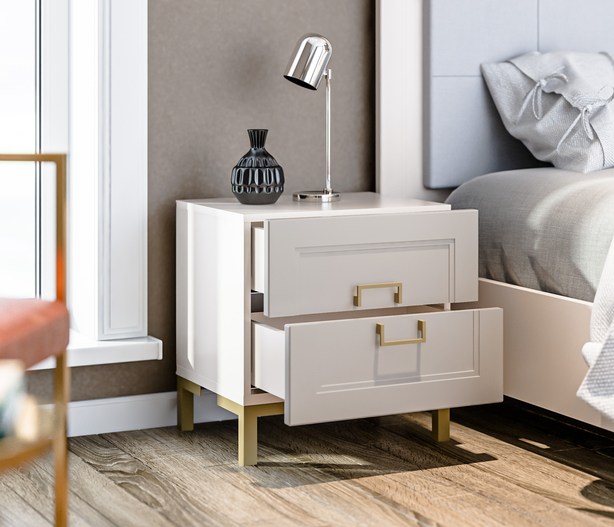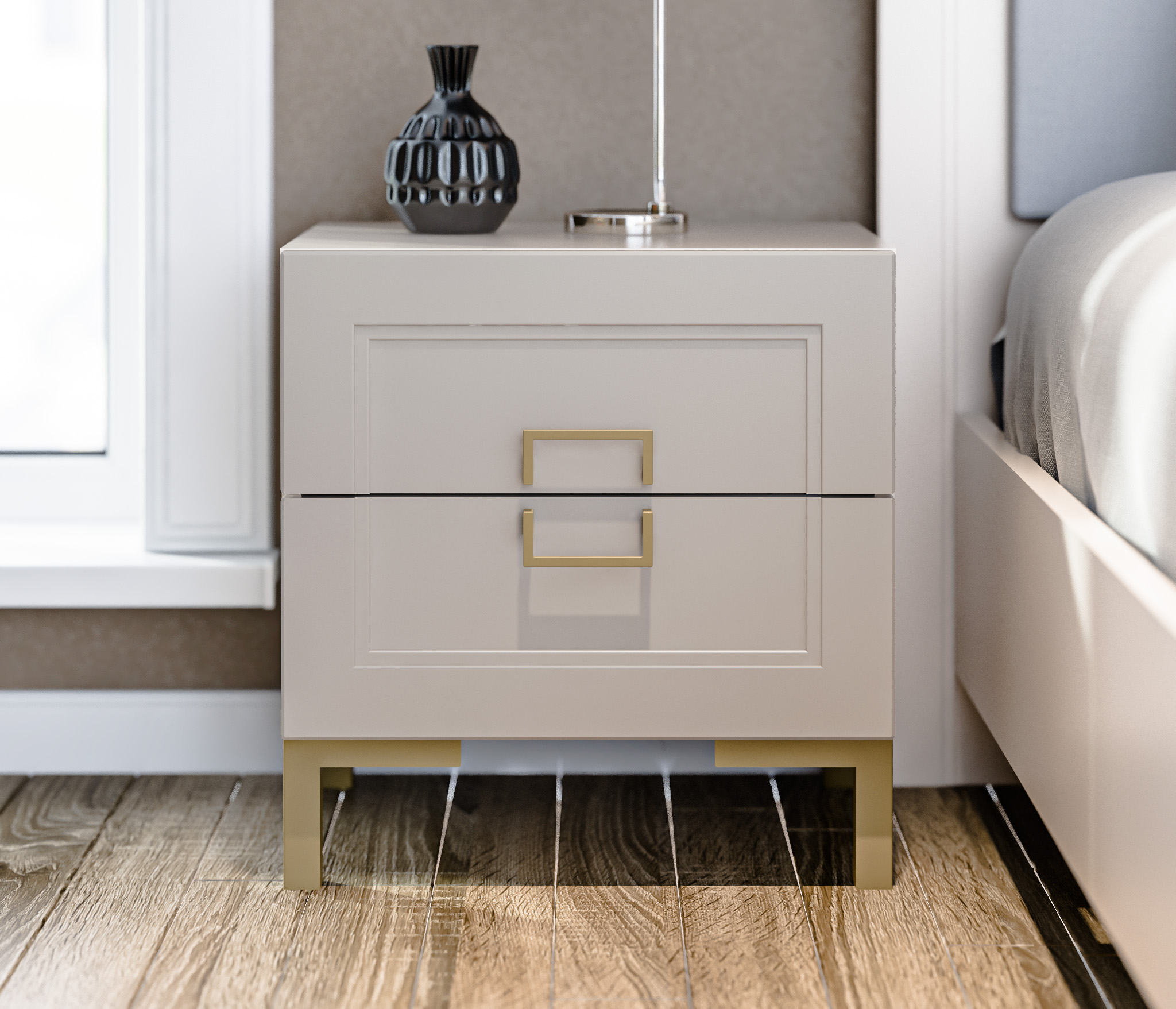 Золотистые ручки и ножки коллекции "Ассоль" добавляют неповторимый шик и изысканность, завершая образ тонким и стильным блеском. Эти акценты создают атмосферу роскоши и утонченности. Они играют роль визуального украшения, дополняя общий вид мебели и придавая ей особый шарм и элегантность.